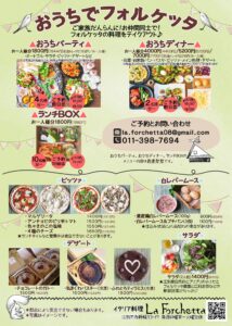 メニュー内容おまかせでおうちでフォルケッタをお楽しみください♪