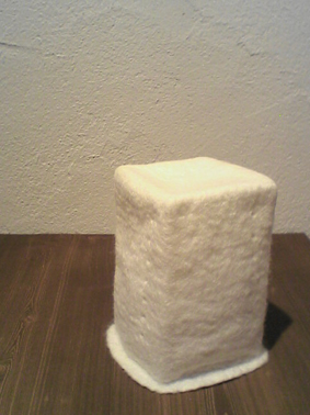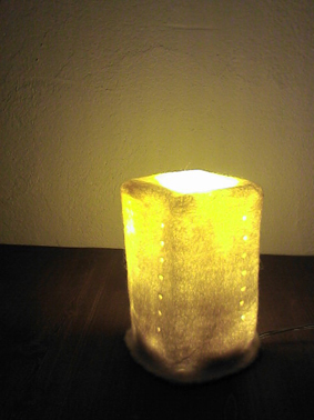 ほんわか甘い香りの「SUGAR」そしてギャラリーにあたたかな灯りを添えてくれている「TO-FU LAMP」の2作品です。