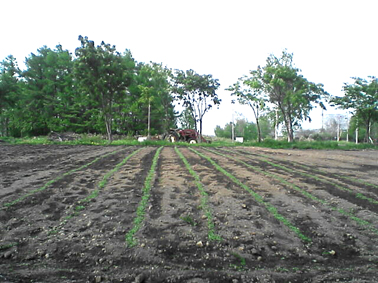 先日ご紹介した亜麻はとっくに発芽して畑にきれいな縞模様を作ってくれました。
