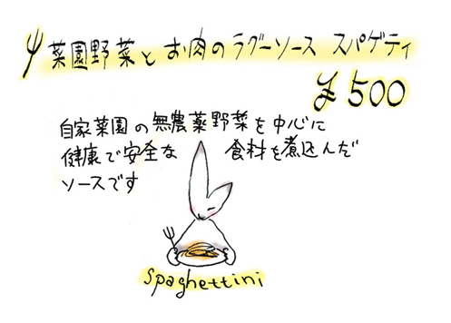 Ψ菜園野菜とお肉のラグーソーススパゲティ/¥500