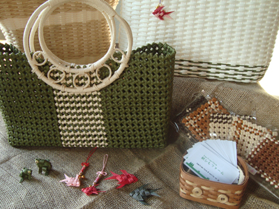 夏祭りでは和テイストな色使いの小物を中心にすてきな紙ひも作品が並びますよ~。