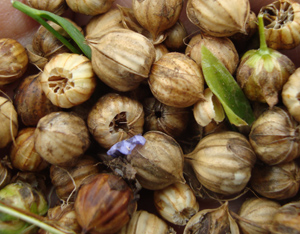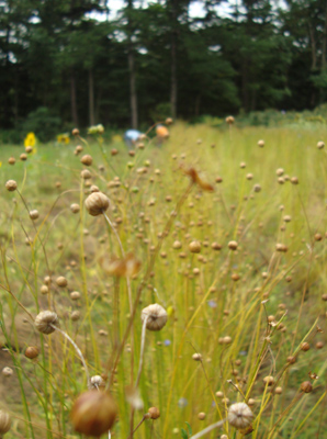 パチパチと軽快な音を立てて亜麻の実がはじけ飛びます。