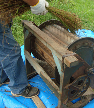 この脱穀機、本来は稲用だそうですが