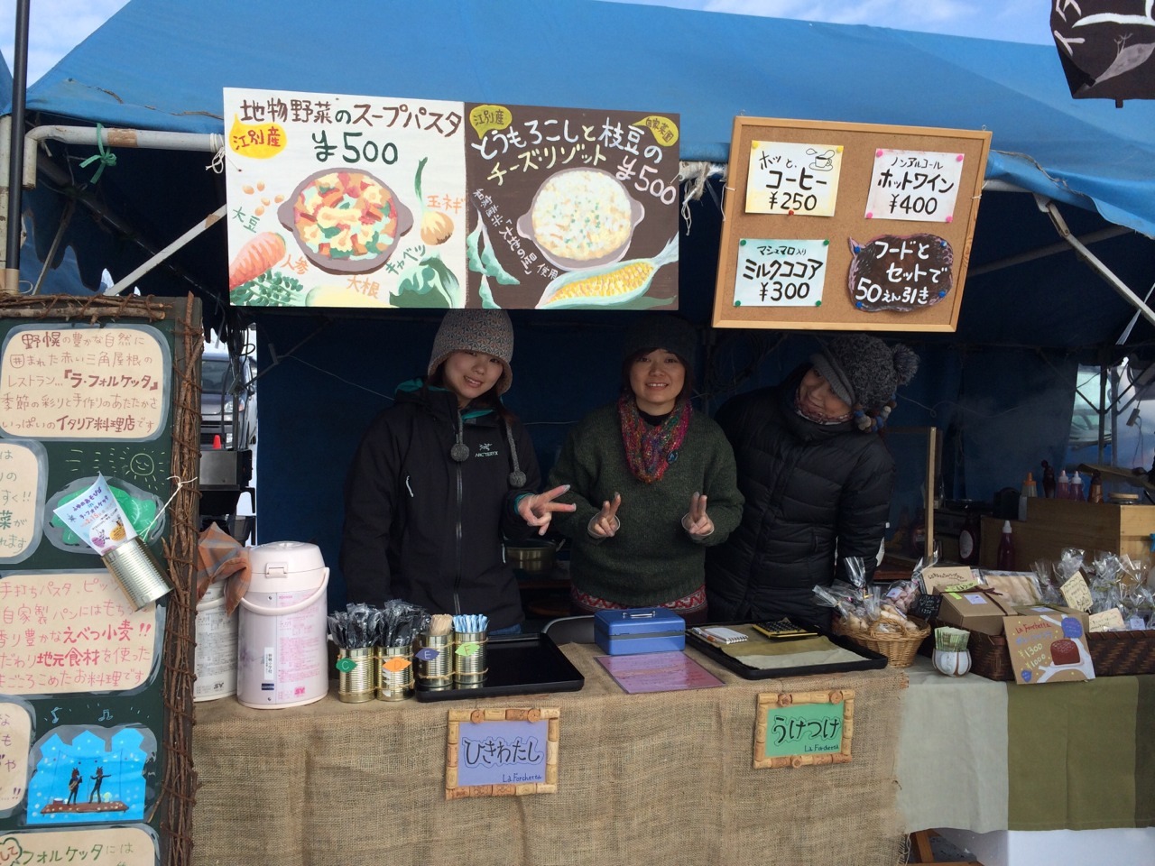 スノーフェスティバル! 公開日: 2015年2月9日更新日: 2015年2月9日著者: testeytastカテゴリー: その他のお知らせ スノーフェスティバルへの出店がお開きとなりました~。一日目の晴天とうってかわって二日目は雨風に見舞われましたが雪の会場でみなさまにお会いできたことがなによりだったと思います。二日間ありがとうございました!お越しくださいました方々!はじめまして♪だった方々!来られずとも応援してくださっていた方々にも!こころから御礼申し上げます!またたのしいこといっぱいしていきたいと思いますのでどうぞこれからもラ・フォルケッタにお付き合いくださいね♪ 関連記事 01 フォルケッタ★フェイスブック ラ・フォルケッタのフェイスブックページはこちらをクリック♪ 公開日: 2015年5月1日更新日: 2015年5月1日著者: testeytastカテゴリー: その他のお知らせ 27 トレビス フォルケッタ農園ではいまトレビスが収穫期を迎えています。トレビス(種苗会社によってはトレビノとも呼称)はイタリア原産のチコリの一種でホロ苦く、サラダに入れたり、肉料理の付け合せに使います。外見は紫キャベツに似ていますが、 […] 公開日: 2015年7月27日更新日: 2017年7月8日著者: testeytastカテゴリー: その他のお知らせ 14 春のかほり シェフの心の故郷 九州は鹿児島薩摩より届いた立派な立派なたけのこどんです♪ こんが~り香ばしく網焼きして チーズソースをとり~~り 「たけのこの網焼きチーズソースがけ」 独特の歯ごたえがたまりません。 ワインにぴったり春 […] 公開日: 2011年4月14日更新日: 2011年4月14日著者: testeytastカテゴリー: その他のお知らせ この投稿へのコメント コメントはありません。 コメントを残す コメントをキャンセルメールアドレスが公開されることはありません。 ※ が付いている欄は必須項目ですコメント ※ 名前 ※ メール ※ サイト 次回のコメントで使用するためブラウザーに自分の名前、メールアドレス、サイトを保存する。 Δ この投稿へのトラックバック トラックバックはありません。 トラックバック URL