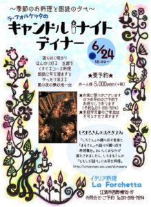 本日のディナーは貸切となります 公開日: 2017年6月24日更新日: 2017年6月25日著者: WEB担当 Mカテゴリー: イベント 本日6/24(土)はキャンドルナイト開催につき、貸切となります。 ご了承くださいませ… 関連記事 ミニバンキャンピングカーと移動販売お花屋さんがフォルケッタにやってきます🚚♪♪ GW最終日5/7土曜5/8日曜にフォルケッタのお庭に可愛い可愛いキャンピングカー(レンタカー)の展示会とお花屋さん(ちょうど母の日)がやってきます🚚 11:00~14:30頃まで どうぞお気軽に見にいらしてください♪♪ […] 公開日: 2022年4月30日更新日: 2022年4月30日著者: La Forchettaカテゴリー: イベント 🎁🌟クリスマスディナー🎅🎄 今年はクリスマスディナーを土日に設けました。そのためお日にちは、12/21(土)と12/22(日)になりました😊 少し早めのクリスマスですが、ごゆるりとお楽しみ頂けたらと思います♪ ご予約お待ちしております❣️ 公開日: 2024年11月10日更新日: 2025年3月2日著者: La Forchettaカテゴリー: イベント 🎄🧸🎁︎ ̖́-フォルケッタのXmasディナー2023🍽🍷✨ 1年に1度のクリスマス🎅今年もフォルケッタで、ステキな夜を過ごしませんか? 22(金)、23(土)、24(日)の3日間、スペシャルティナーをご用意致しました✨️🍽🍷✨ なんと最終日の24(日)は、iora Caravan […] 公開日: 2023年10月22日更新日: 2024年5月3日著者: La Forchettaカテゴリー: イベント この投稿へのコメント コメントはありません。 コメントを残す コメントをキャンセルメールアドレスが公開されることはありません。 ※ が付いている欄は必須項目ですコメント ※ 名前 ※ メール ※ サイト 次回のコメントで使用するためブラウザーに自分の名前、メールアドレス、サイトを保存する。 Δ この投稿へのトラックバック トラックバックはありません。 トラックバック URL