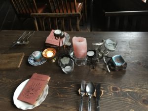 それぞれのテーブルにさまざまなキャンドルを置いていきます。