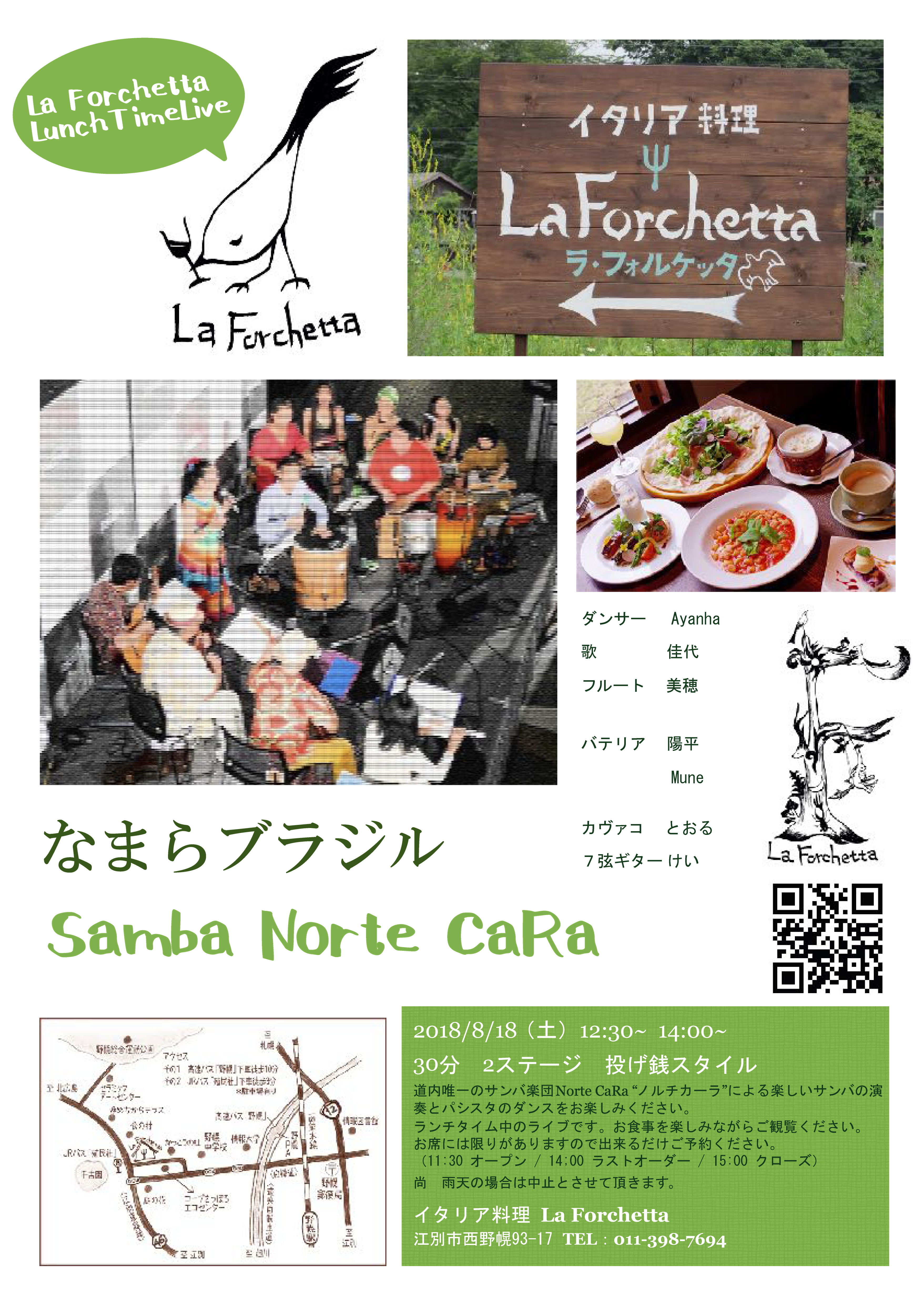 なまらブラジル!な投げ銭ライブを、ランチタイムと一緒にいかがですか?