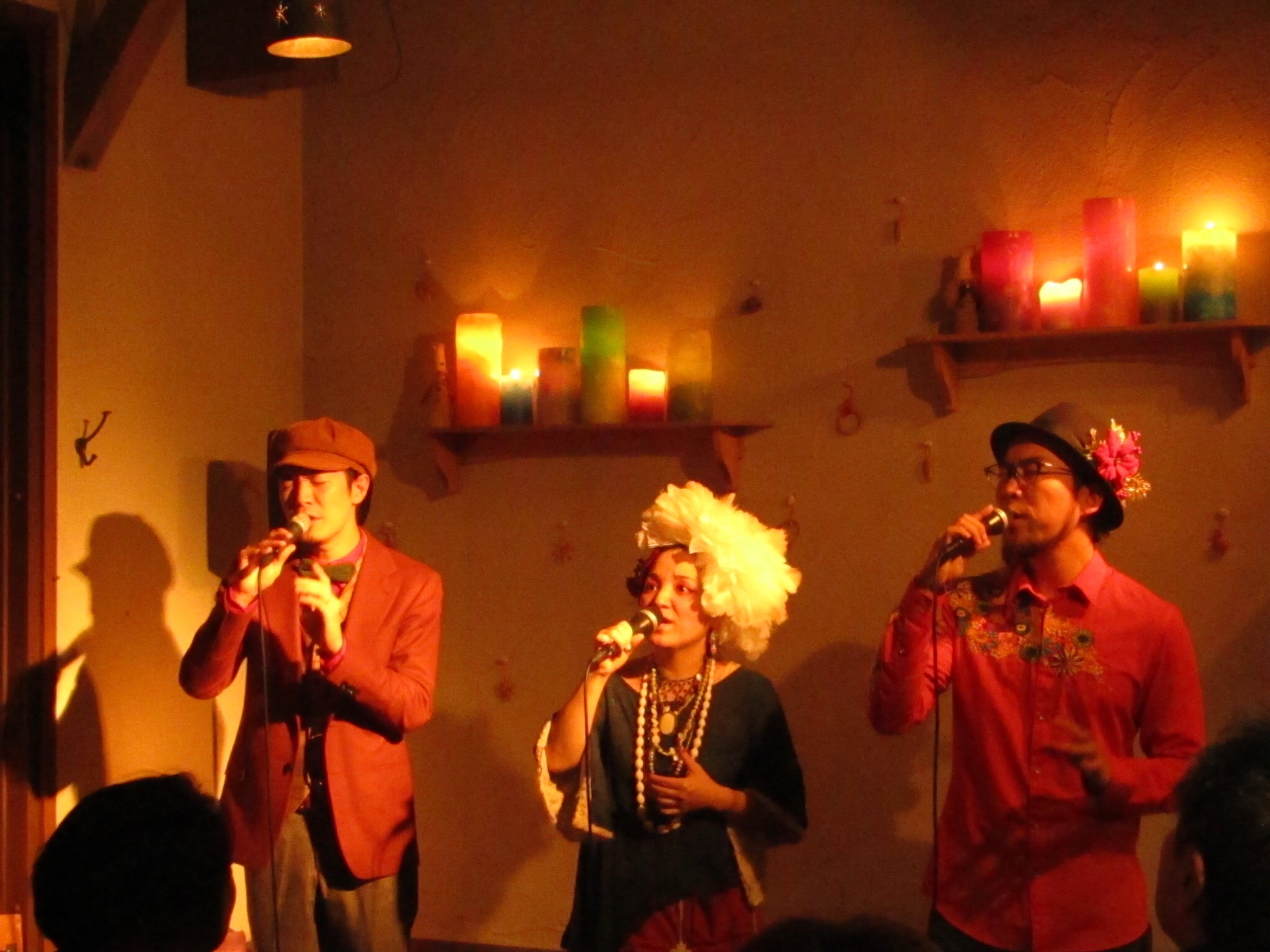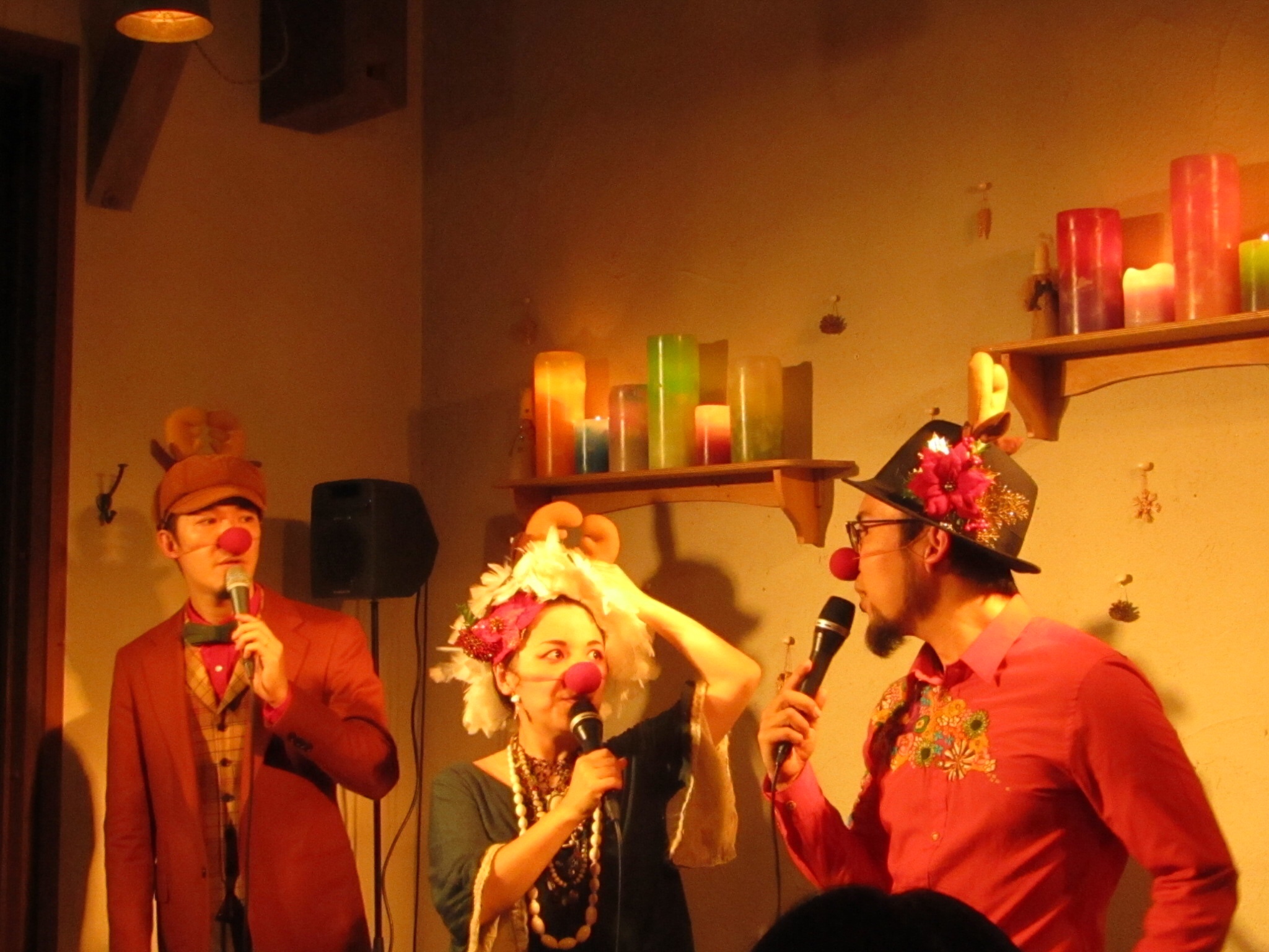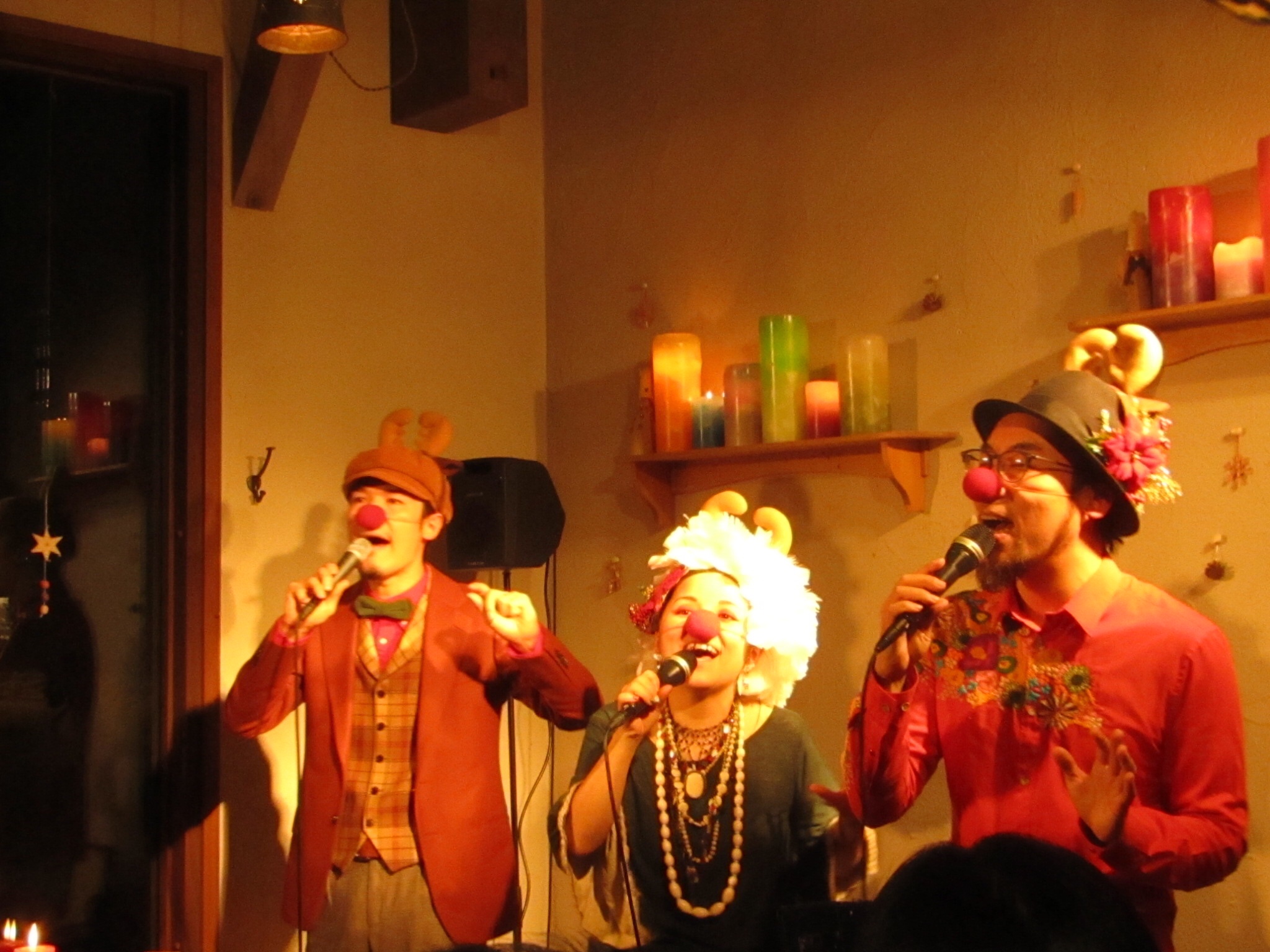 iora周さん桃さんといぶきさらさの伊藤大輔さんの三人編成。3人とは思えないくらいの複雑なハーモニー♫18曲?程のXmasにまつわる曲をたっぷりと、曲のエピソードや愉快なかけ合いトークもたっぷり^ ^まんぷくなひとときでした。