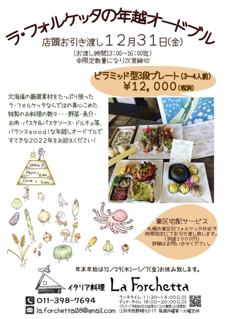 年末オードブルご予約承り中 公開日: 2021年10月27日更新日: 2021年11月3日著者: La Forchettaカテゴリー: イベント 昨年のオードブル写真 ご予約お待ちしております❣️0113987694 関連記事 16 サンバがやってくる! 8/18土は、通常ランチ営業中に、お庭にサンバがやって来ます(^^) 登場は12:30と14:00。お庭にテーブル出しますので、サンバ観ながらランチもお楽しみください^ ^ お席に限りもありますので、できるだけご予約くだ […] 公開日: 2018年8月16日更新日: 2018年8月16日著者: La Forchettaカテゴリー: イベント ミニバンキャンピングカーと移動販売お花屋さんがフォルケッタにやってきます🚚♪♪ GW最終日5/7土曜5/8日曜にフォルケッタのお庭に可愛い可愛いキャンピングカー(レンタカー)の展示会とお花屋さん(ちょうど母の日)がやってきます🚚 11:00~14:30頃まで どうぞお気軽に見にいらしてください♪♪ […] 公開日: 2022年4月30日更新日: 2022年4月30日著者: La Forchettaカテゴリー: イベント 本日!お芋植え&おとぎよみ 5月恒例の「まるさんのおとぎよみ」はフォルケッタの畑にお芋を植えまーす。 どうぞみなさんお誘いあわせてふかふか土を体感しに来てください♪ こちらも恒例、フォルケッタシェフの親戚が作ってくれた九州名物おいしいおいしいちまき […] 公開日: 2019年5月19日更新日: 2019年5月26日著者: La Forchettaカテゴリー: イベント, まるさんのおとぎよみ この投稿へのコメント コメントはありません。 コメントを残す コメントをキャンセルメールアドレスが公開されることはありません。 ※ が付いている欄は必須項目ですコメント ※ 名前 ※ メール ※ サイト 次回のコメントで使用するためブラウザーに自分の名前、メールアドレス、サイトを保存する。 Δ この投稿へのトラックバック トラックバックはありません。 トラックバック URL